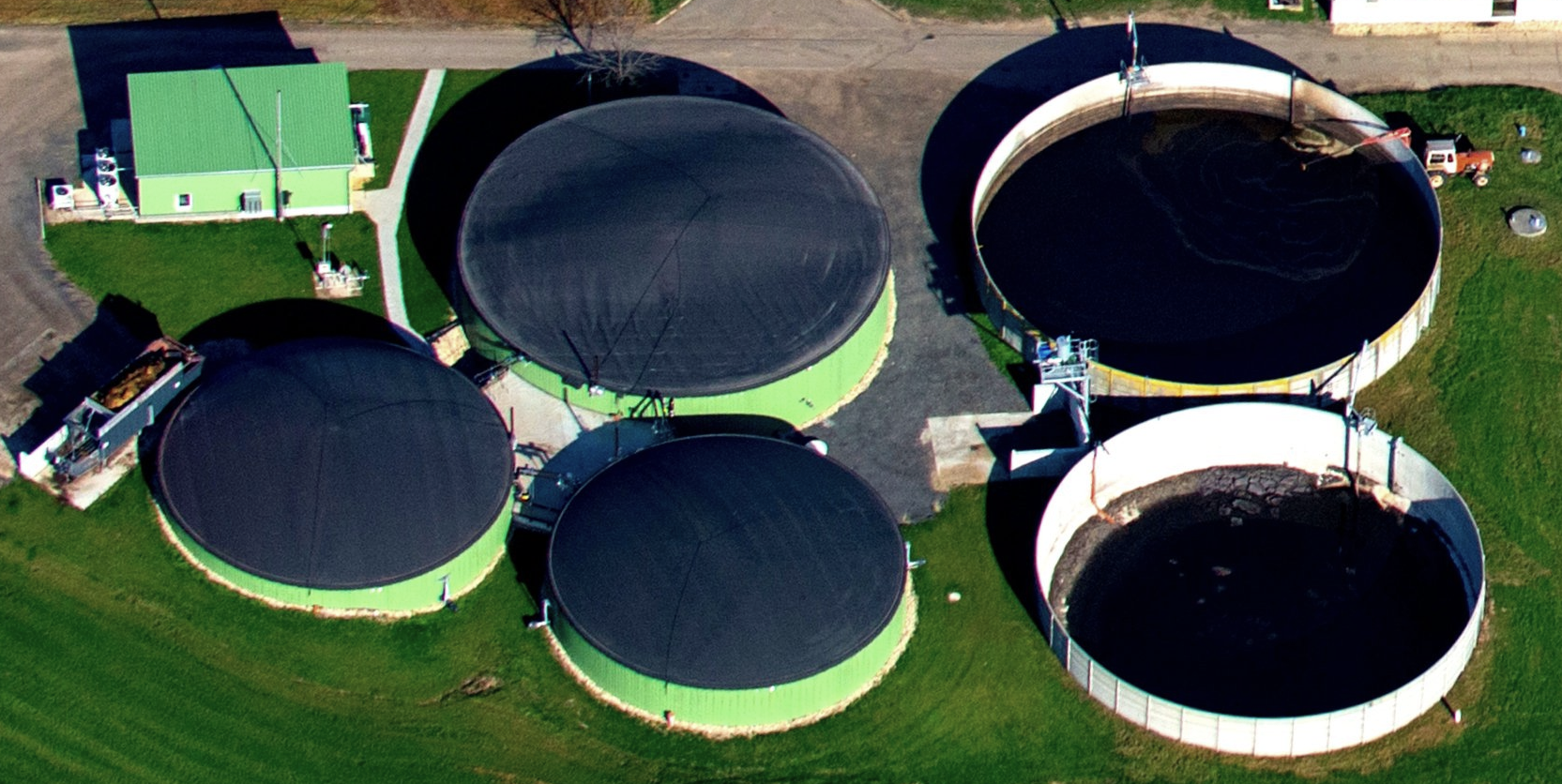Unsere Biogasanlage hat eine Leistung von 430 KW, es werden das anliegende Wohngebäude, die Ställe, die Getreidetrocknung und das Sozialgebäude mit Wärme versorgt.